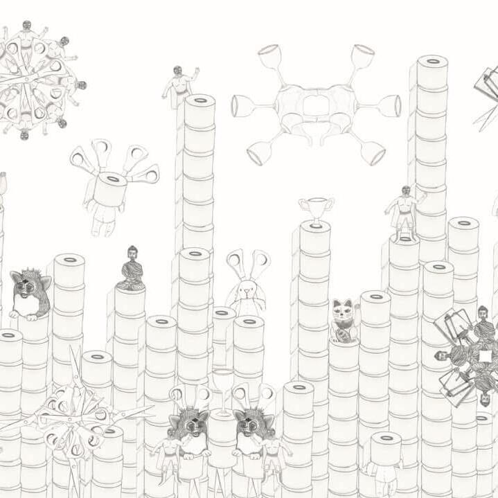 My practice brings together visual art and design through painting, collage, and mixed media, exploring reconstruction as a way of reordering fragments of the contemporary world. Through a playful and intuitive process, I transform lived experience and found materials into new visual and collective forms.